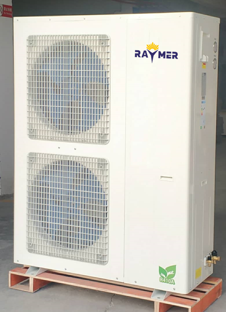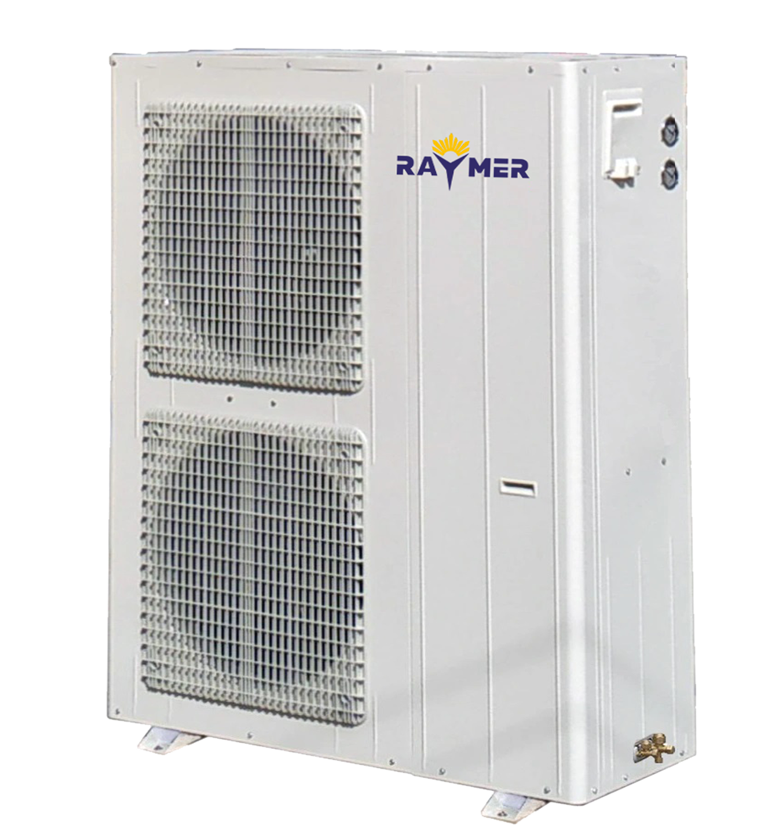 Під час роботи теплового насоса моноблочного типу Raymer — вентилятори з регульованою швидкістю проганяють зовнішнє повітря через теплообмінник повітря-холодоагент в задній частині агрегату. У режимі обігріву цей теплообмінник служить випарником. Низькотемпературне тепло поглинається із повітря, а охолоджене повітря викидається через решітки вентиляторів у передній частині агрегату. У режимі охолодження той же теплообмінник служить конденсатором для відведення тепла у зовнішнє повітря.