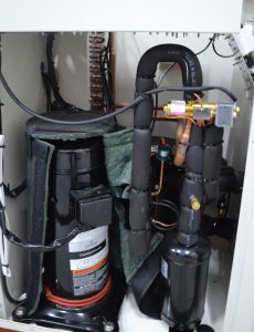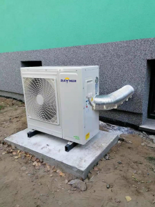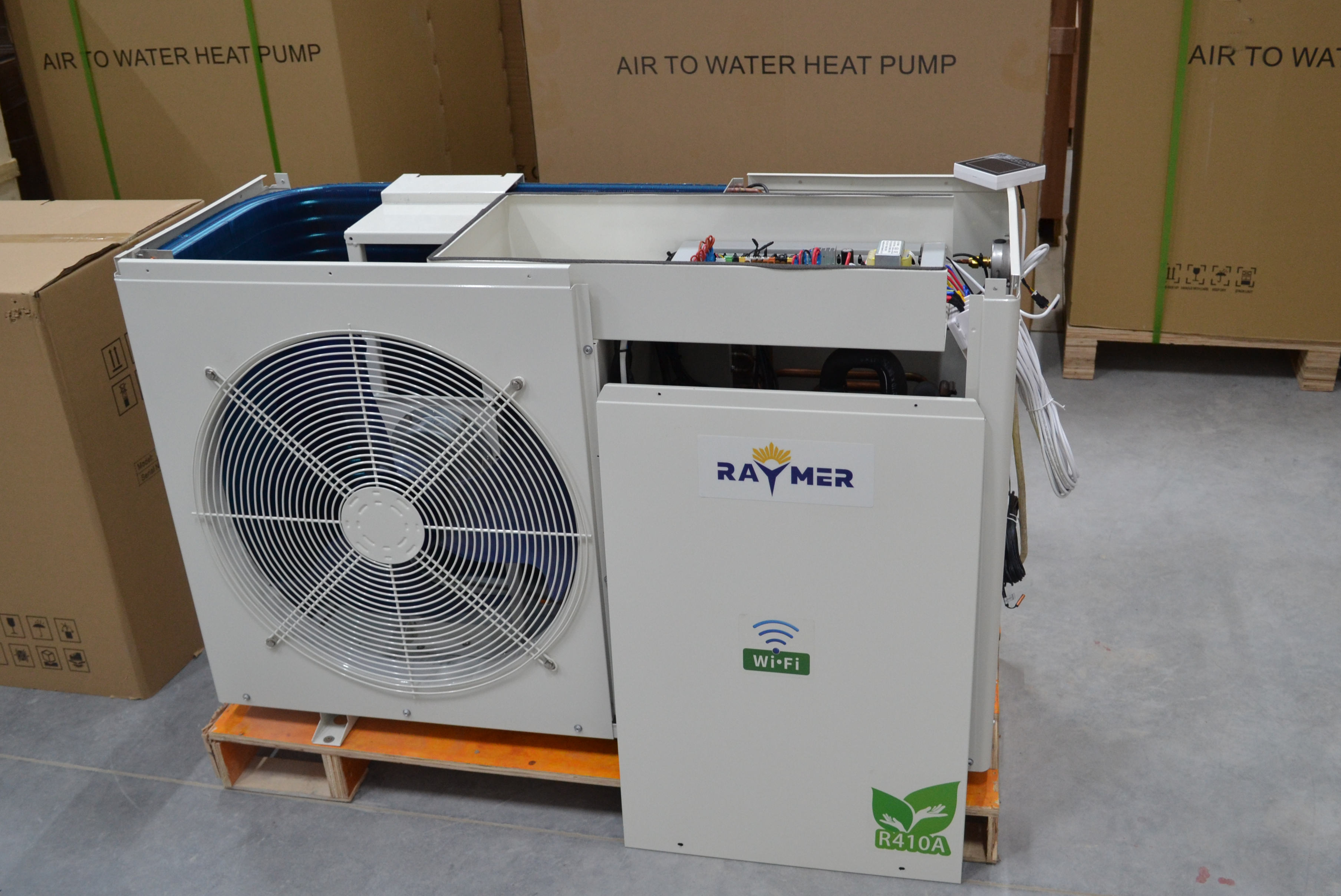Під час роботи теплового насоса моноблочного типу Raymer — вентилятори з регульованою швидкістю проганяють зовнішнє повітря через теплообмінник повітря-холодоагент в задній частині агрегату. У режимі обігріву цей теплообмінник служить випарником. Низькотемпературне тепло поглинається із повітря, а охолоджене повітря викидається через решітки вентиляторів у передній частині агрегату. У режимі охолодження той же теплообмінник служить конденсатором для відведення тепла у зовнішнє повітря.